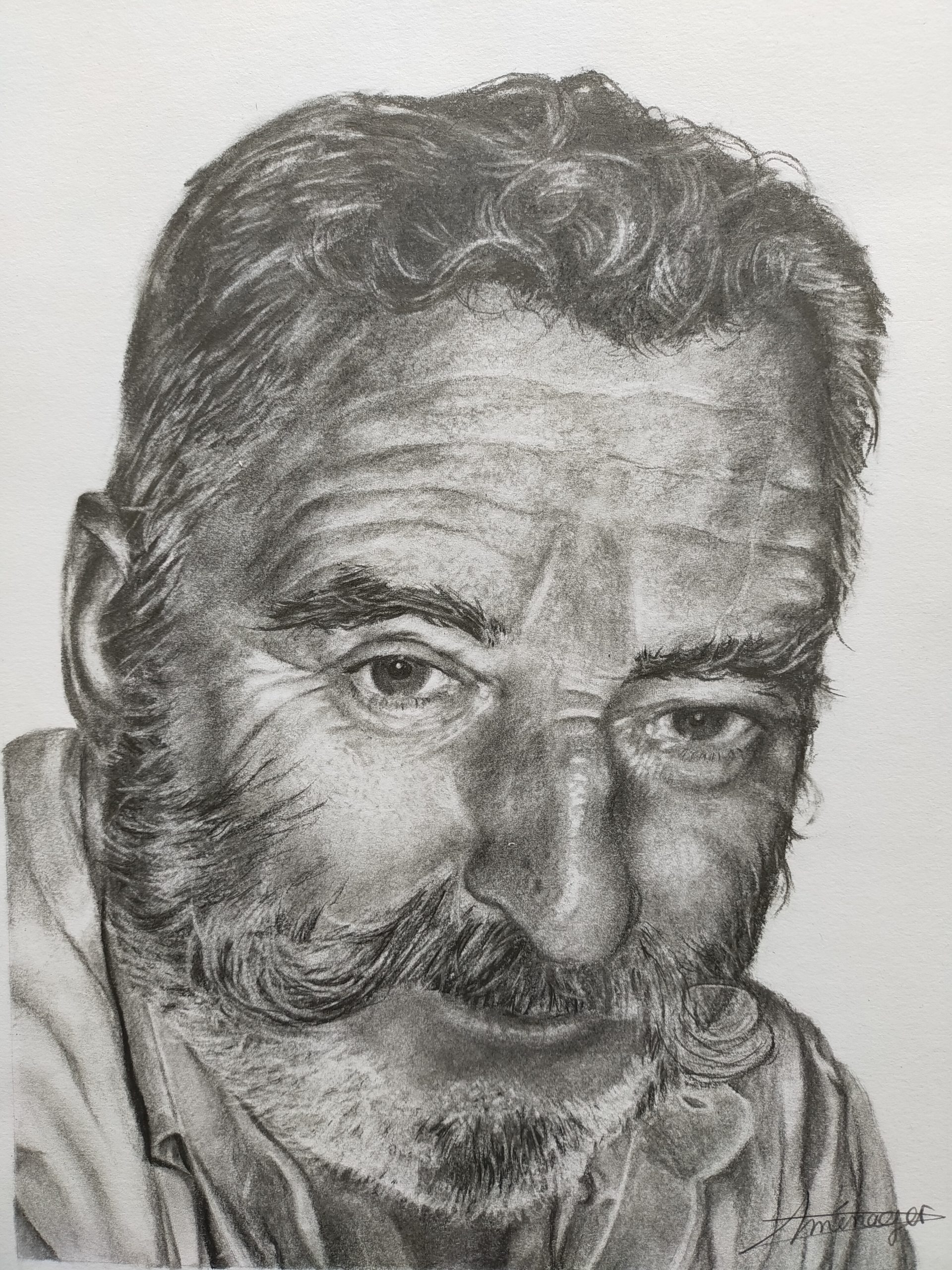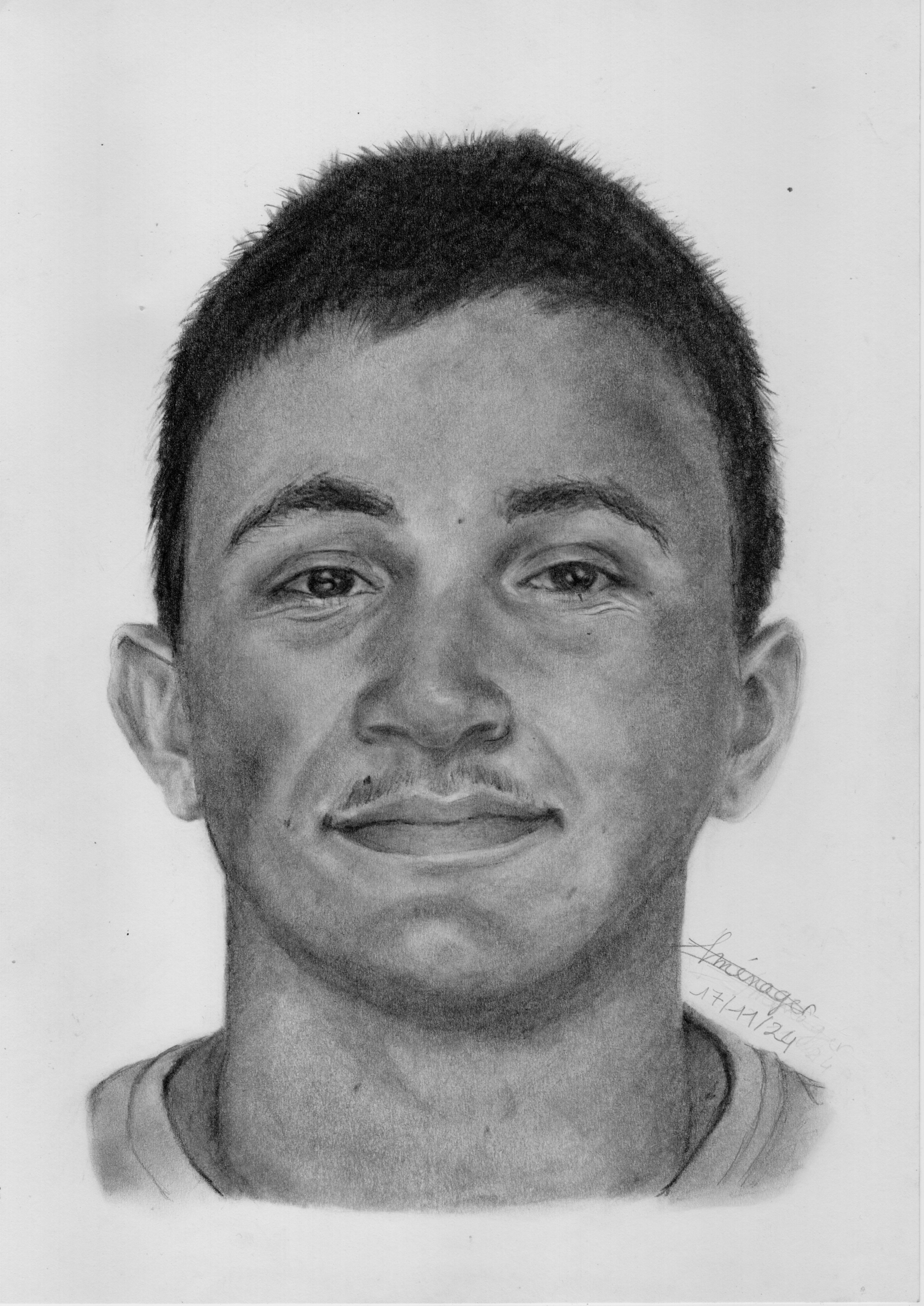 J’ai dessiné mon frère pour ses 18 ans et en utilisant encore une fois des mines de plomb, estompes, une gomme mie de pain et un stylo-gomme.